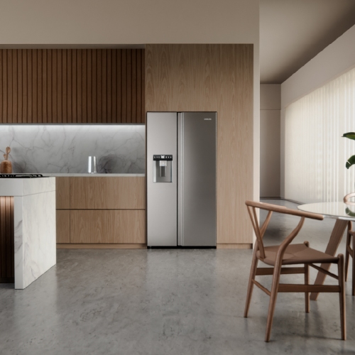 Heladera Side by Side de gran capacidad (610 L) con tecnología Inverter que optimiza el consumo energético y mantiene una temperatura estable. Cuenta con panel Touch para un control práctico y preciso, diseño moderno en acero inoxidable y distribución interna eficiente para una mejor organización de alimentos. Ideal para familias que buscan rendimiento, espacio y estilo en su cocina.